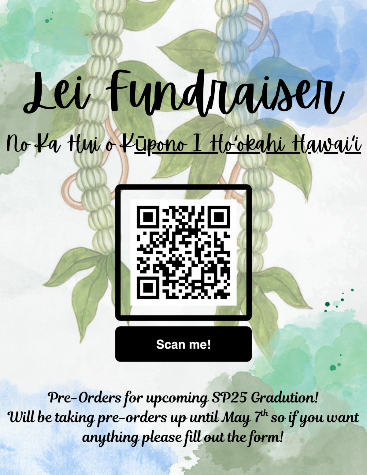 Kū Pono I Hoʻokahi Hawaiʻi, KCC Hawaiian Club will be holding a lei fundraiser for upcoming graduations. The lei will be handmade by our club members. We are now accepting pre-orders for the following lei styles: Lei poʻo, Lei haku, Lei lāʻī (ti-leaf), Lei kui (sewn flowers). Please fill out the form and we will get back to you as soon as we can. Mahalo for your support!