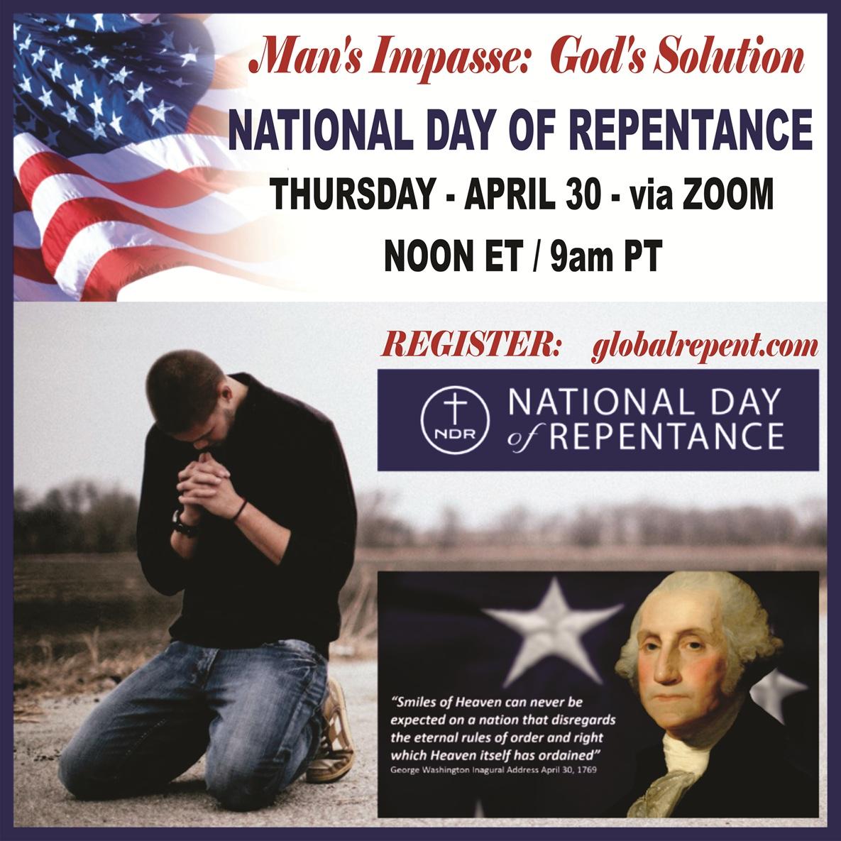 This coming April 30 NDR will hold for the 14th year in a row a call for a National Day of Prayer, Fasting and Repentance. It's a call at the grassroots in prayer closets and in local churches that day as any pastor may choose.
