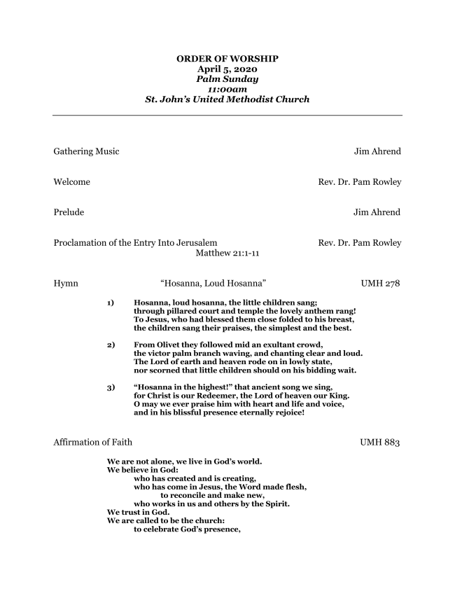 Join Us this Maundy Thursday & Good Friday, April 9&10 For Worship Live-Streamed From the Sanctuary! St. John’s will live-stream a worship service from the sanctuary this Thursday and Friday at 7:30 pm, and we hope you’ll worship with us! (Pastors Pam and Kelly will lead, along with Shea Perry, Jim Ahrend, and Matt Greer). Live-stream will be available on the homepage of the website.