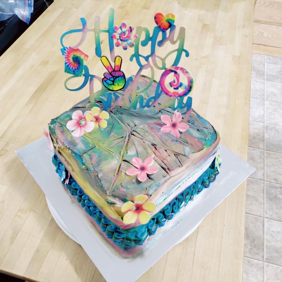 Sweet 16 was super groovy for our birthday girl, thanks to this beautiful tie-dye cake made by Jenna Pickell. Jim Waugh delivered the cake along with some makeup, body and fragrance kits, a book, and gift cards.