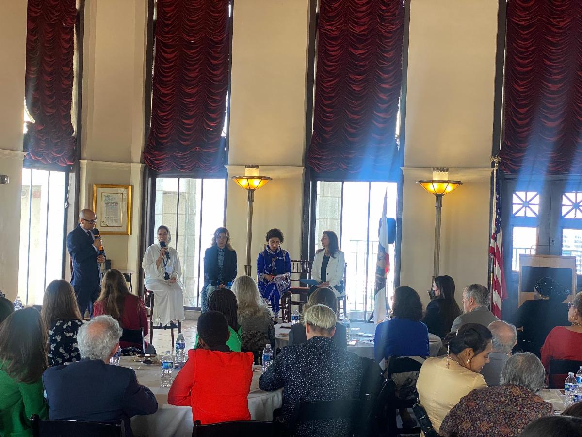 The ICDLA Luncheon was held in the Tom Bradley Room at L.A. City Hall to celebrate these inspiring women. Deputy Mayor of International Affairs Erin Bromaghim welcomed the women to Los Angeles and a panel discussion followed, moderated by Joumana Silyan-Saba, Director of Policy for the City of Los Angeles Department of Civil and Human Rights. The panel participants, who shared their profound stories with the ICDLA guests, were #IWOC recipients Rabha El Haymar from Morocco, Benafsha Yaqoobi from Afghanistan, and Fariba Balouch from Iran.