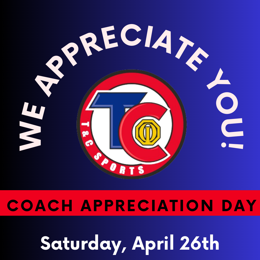 A heartfelt thank you to everyone who has generously given their time to support T&C Sports. From the sidelines to the dugouts, your efforts make all the difference. Let's shine the spotlight on our amazing volunteer coaches as we gear up for Coach Appreciation Day on April 26th. Please join me in celebrating these incredible individuals who go above and beyond to coach and mentor our kids and help create the positive, supportive environment that makes T&C so special.