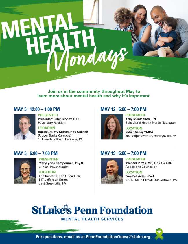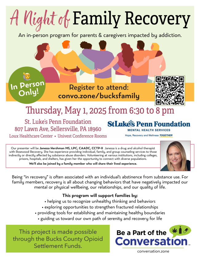 Please continue to keep us informed of what's happening with you in Bucks and Montgomery Counties. The information here comes from you, with links to our website for more complete information and resources. Send your events and updates to Kristyn: kristyn@bucksmontcollab.org. Thank you!