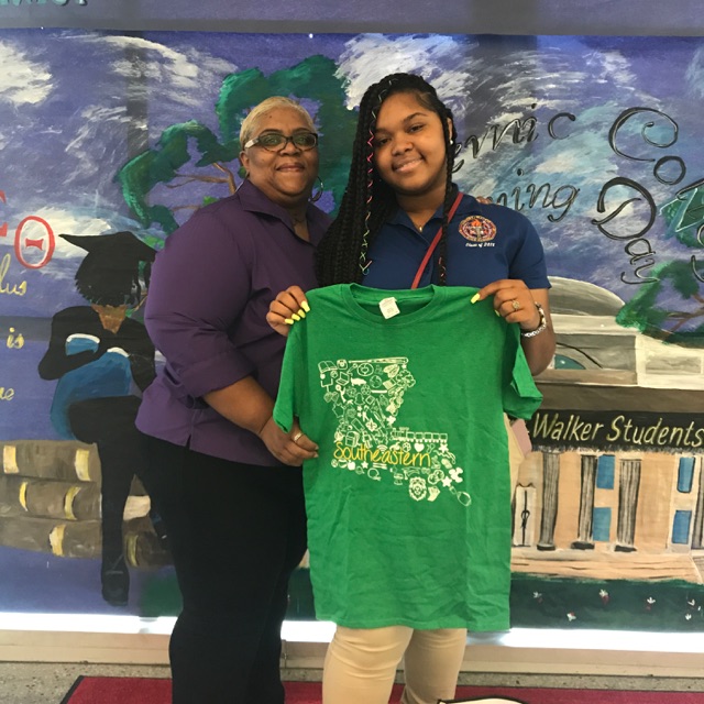 Shaina and her mom hold up a t-shirt from Southeastern Louisiana University, where she plans to attend in the fall.