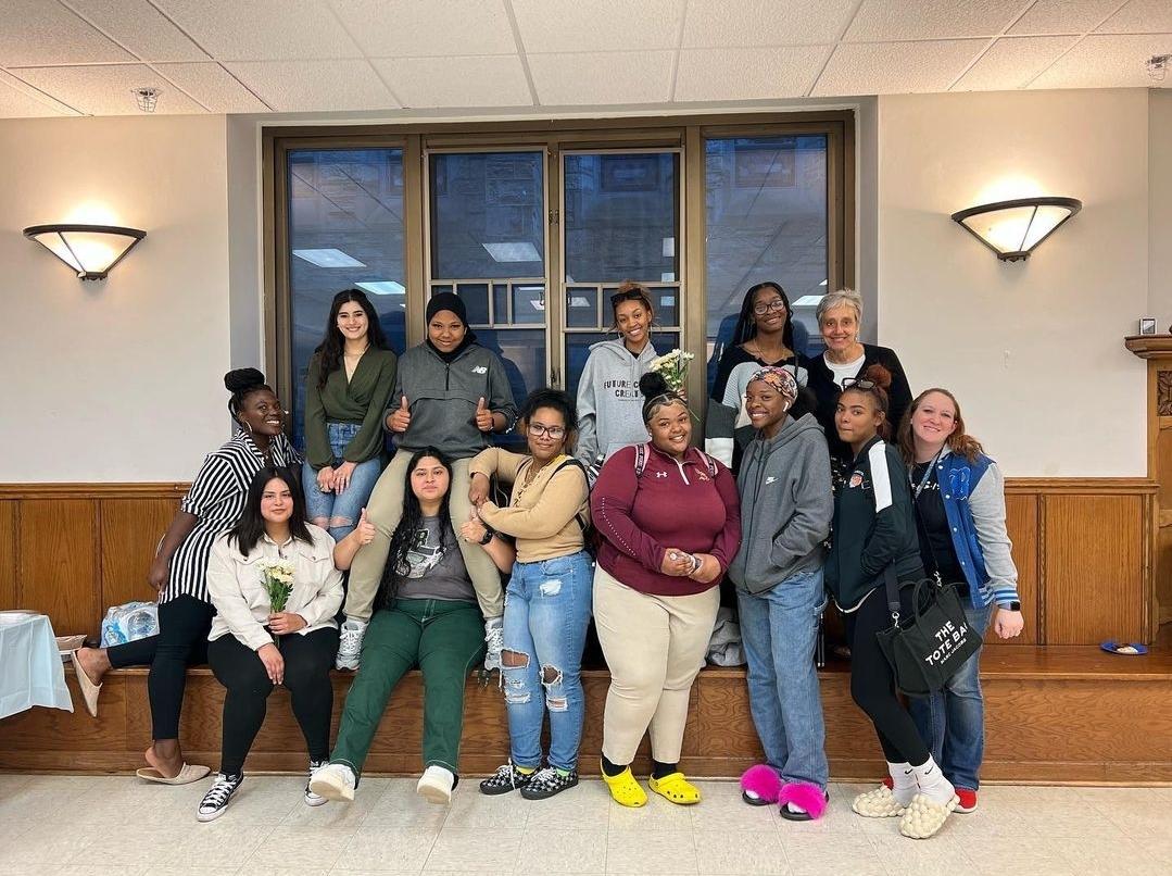 High school and some post high school alumnae with GSP Director Ms. Edoukou and GSP Associate, Mrs. Lucyk.