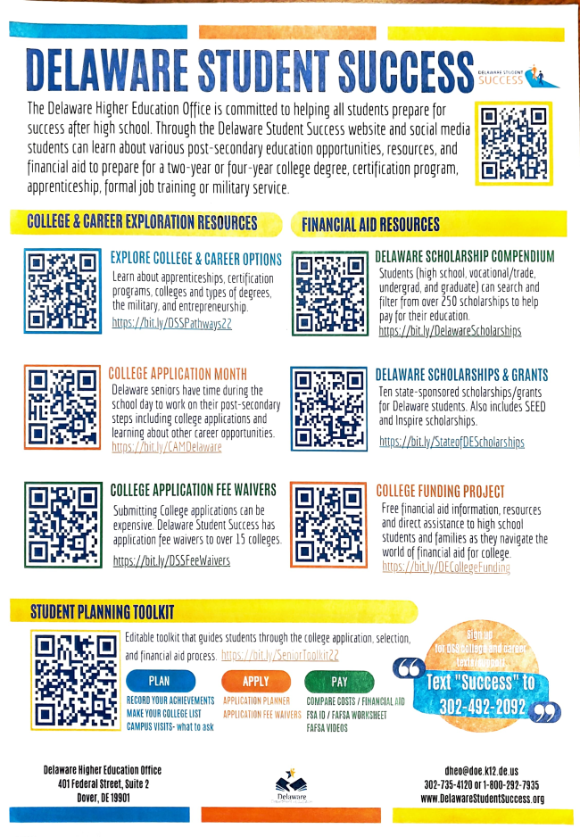 - Be admitted to an accredited Delaware college in a two- or four-year degree program at the undergraduate level
