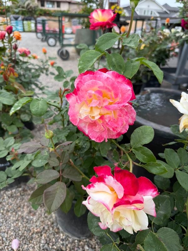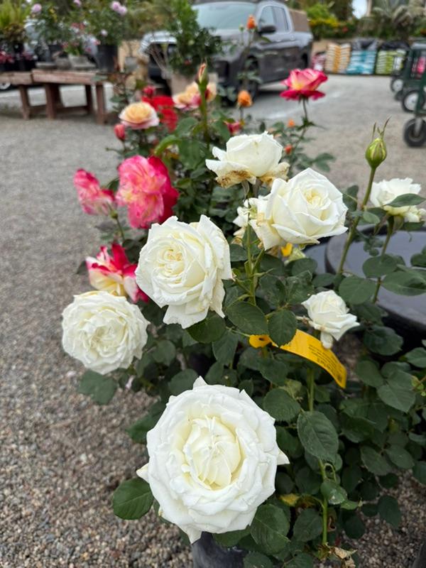| | | Many new plants arrive this month. Roses have arrived and are in bloom, starting their first cycle. Some of my favorites include Yves Piaget, Pope John Paul II, Heavenly Scented, Neptune, Radiant Perfume, Just Joey, and Julia Childs. Unfortunately, David Austin roses won't arrive until the end of the month, as they're late-blooming this year and need more time. | | | |