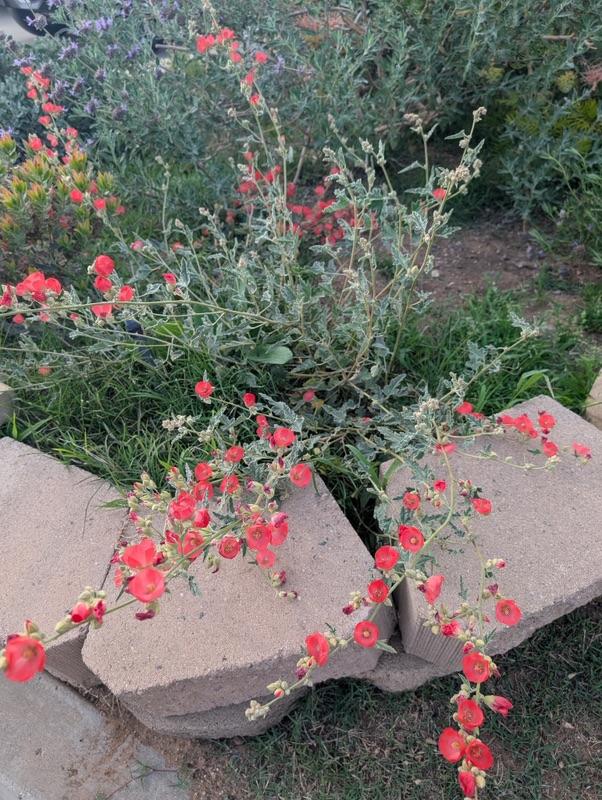 I'm excited about the now-constant flow of plants coming in. I'd like to mention a new variety of bush bougainvillea called Burgundy Queen, which we have in limited supply, as well as Sphaeralcea Louis Hamilton. This one is growing in my garden at home (see pic below).