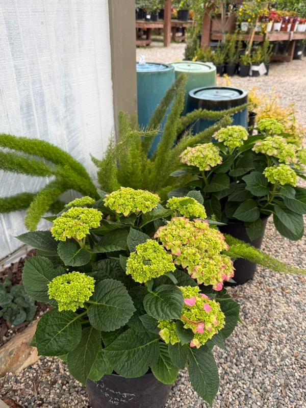 Early hydrangeas are starting to bud, especially the mophead types, which usually bloom closer to Mother's Day. These are typically blue/purple (keep pH low with acidic elements to maintain the color), white, and pink.