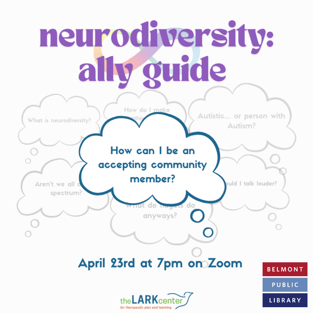 Join us for a virtual program put on by the Lark Center and the Belmont Public Library to learn about neurodiversity and the best ways to be an ally.