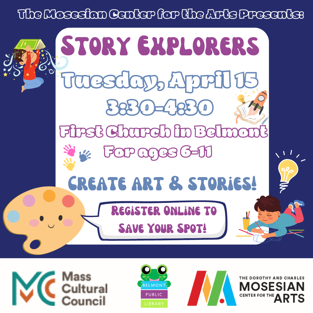 Bring stories to life through art! Join educators from the Mosesian Center for the Arts in this special program where families will learn about the art of storytelling and make accompanying pieces of art. This program and its supplies are funded by the Massachusetts Cultural Council.