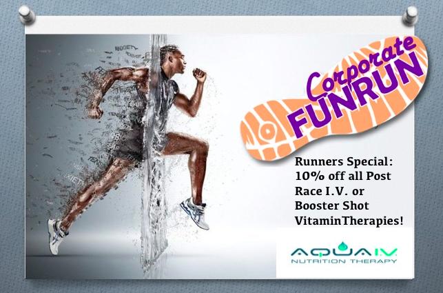 Congratulations on a job well done! Aqua IV was proud to sponsor the 2018 Corporate Fun Run. Health and fitness is our top priority at Aqua IV and we were happy to be able to share information on how IV vitamin therapy can contribute to your quest for wellness to help boost immunity, energy, and metabolism.