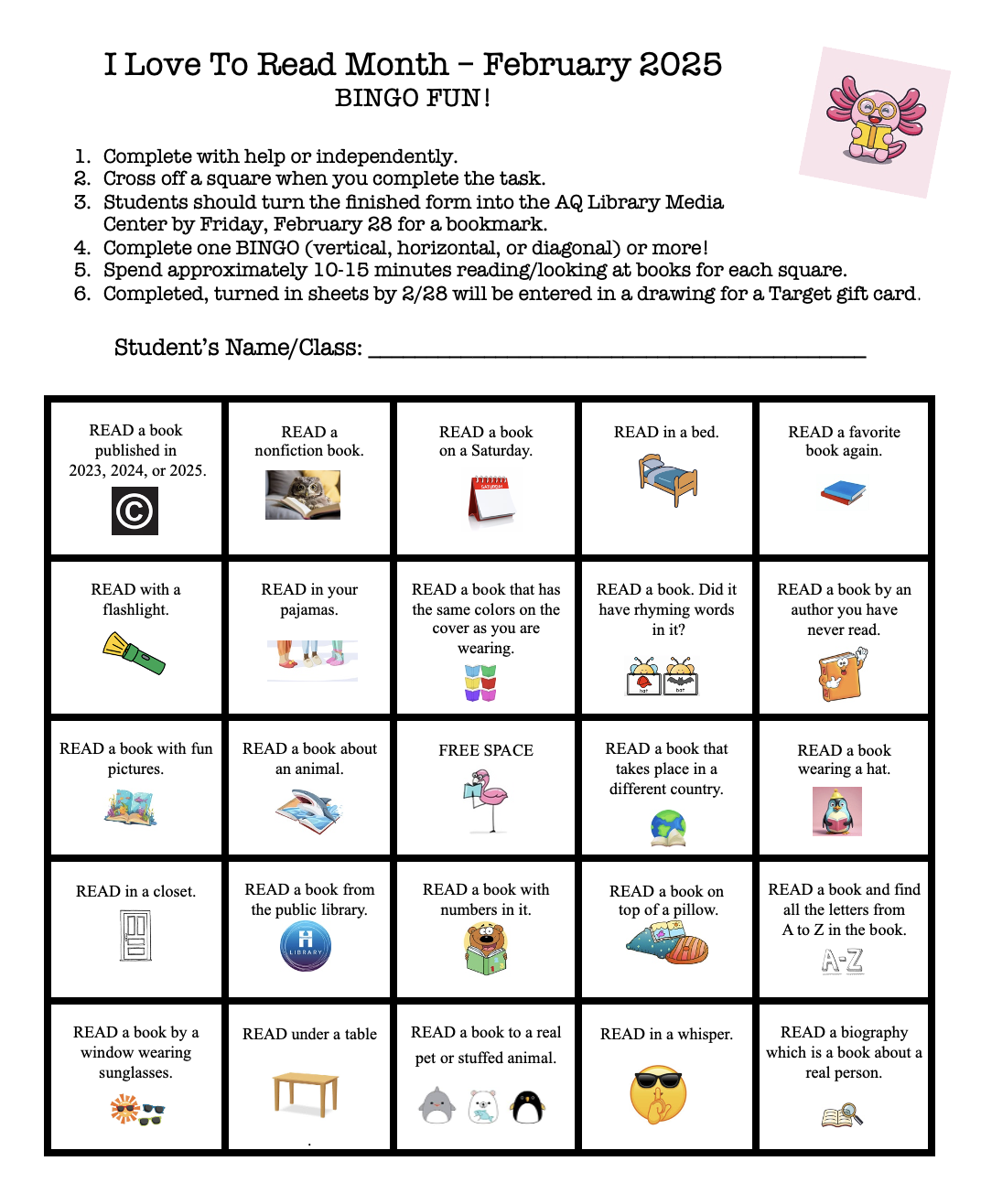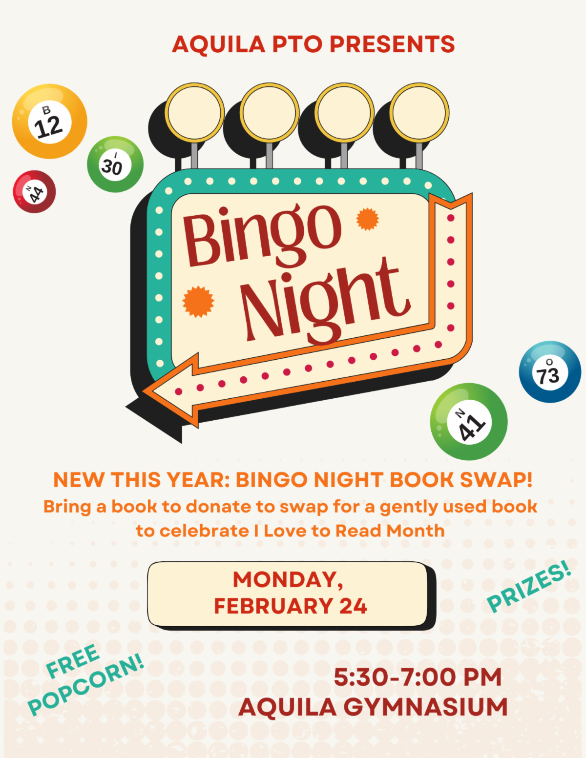 Monday, February 24 ~ AQ Winter Bingo Night - 5:30-7:00 PM