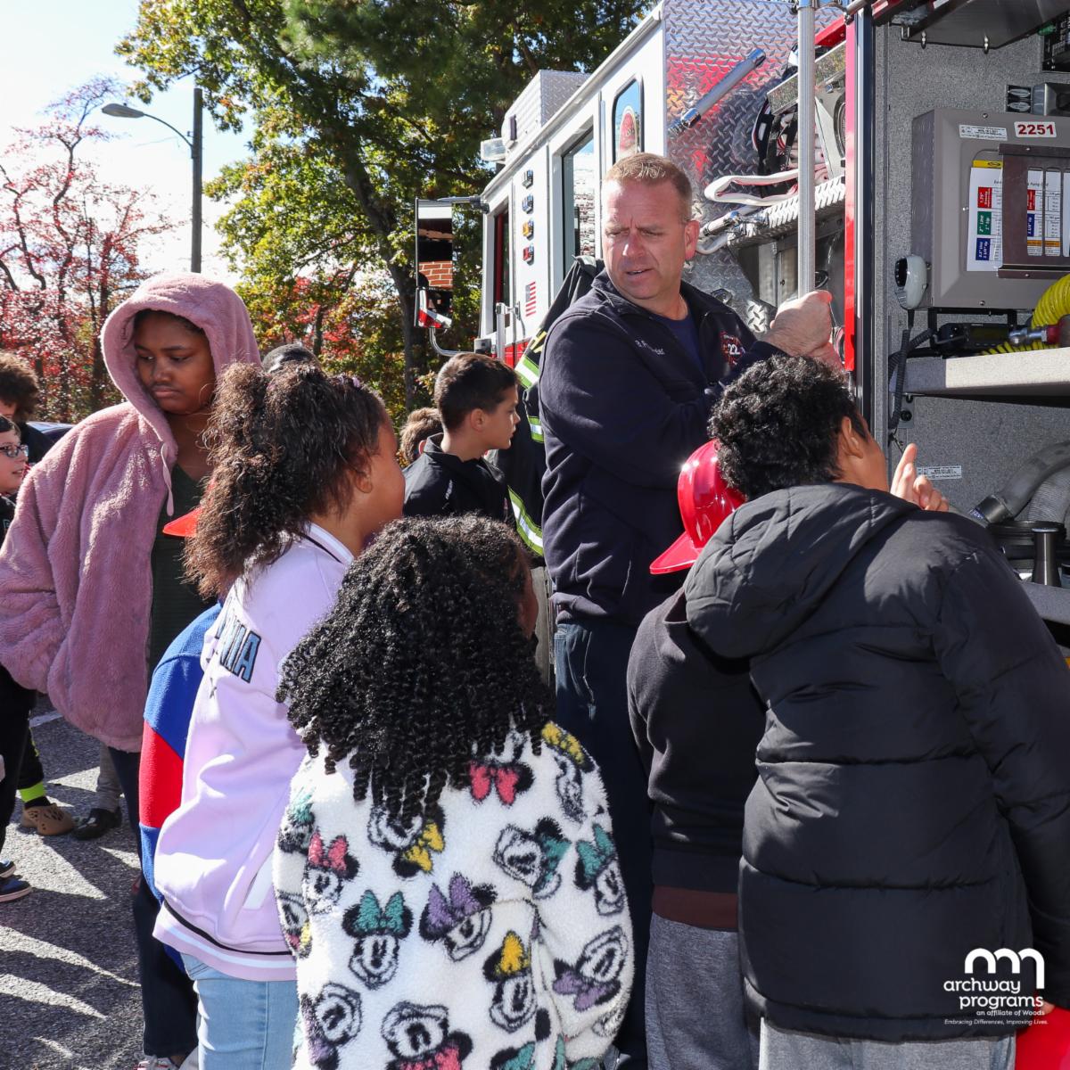 Thank you to Evesham Township Firefighter/Inspector Bryce Priggemeier for the informative fire safety presentation on Tuesday, October 15th. Firefighter Bryce spent the morning at the Archway Upper School talking with students about fire safety in their homes. He encouraged students to speak with their parents about having fire drills in their homes and establishing an outdoor meeting place in the event of a fire. Students were excited to check out his fire truck and all the gear onboard. It was an exciting and informative presentation, and the students went home with information-packed coloring books and other fire safety reminders to share with their families.