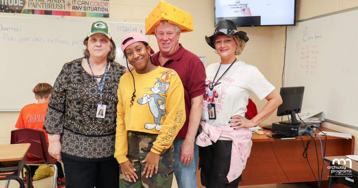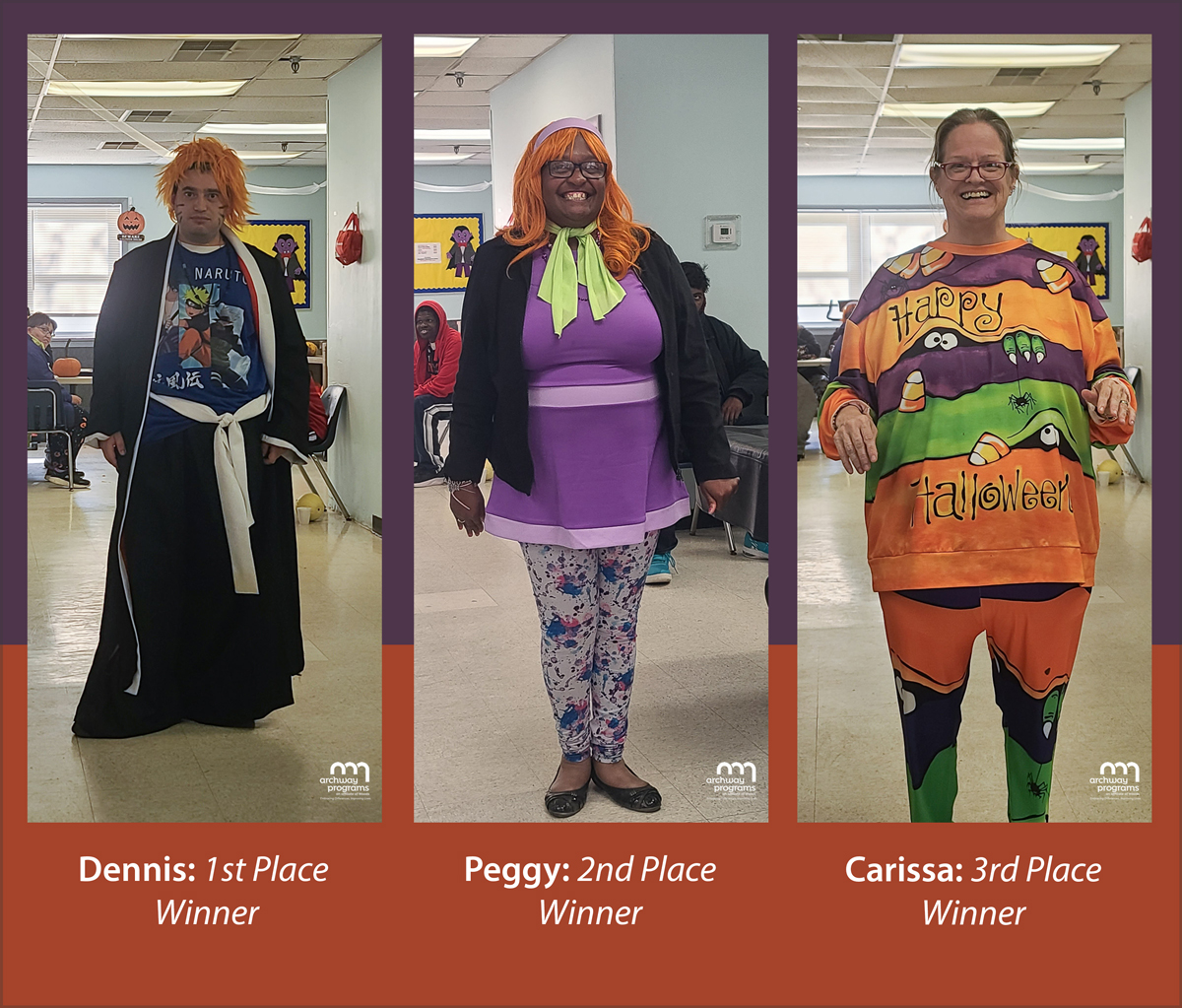 Participants in the Archway Advanced Abilities Day Program enjoyed a festive Halloween party. They dressed up in costumes to show off their creativity and imagination. They listened to music and danced while enjoying pizza and various delicious treats. Everyone had a great time socializing with their friends from the program and loved seeing each other’s costumes!