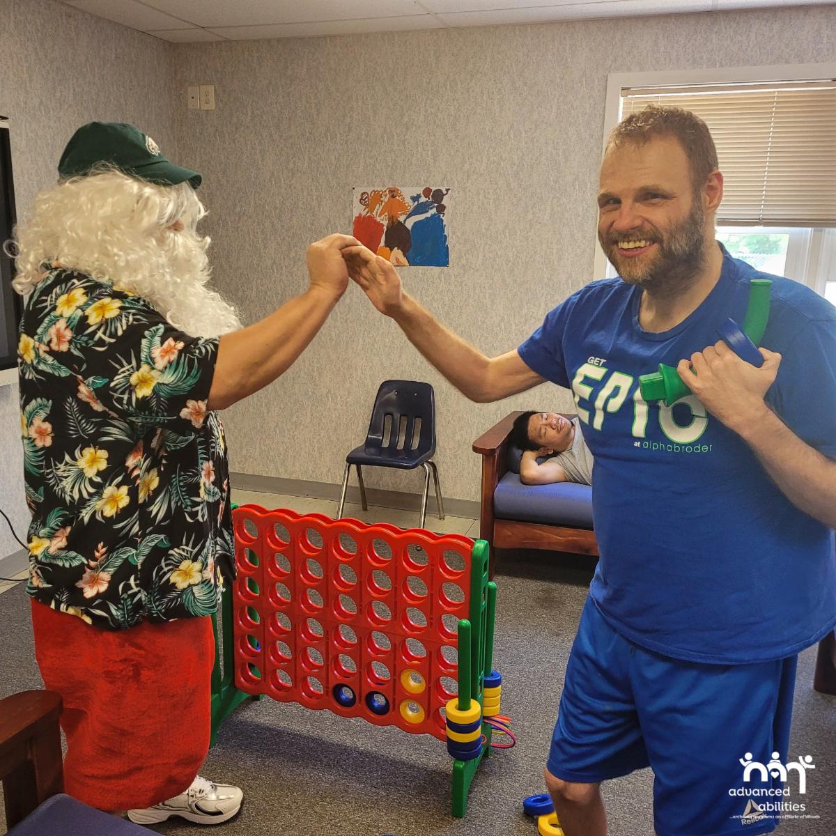Participants at the Advanced Abilities Day Program were thrilled by a visit from a special guest during their afternoon routine. A jolly old elf sporting shorts and a Hawaiian shirt stopped by for a Christmas in July visit! Santa Claus reminded everyone to stay on their toes if they want to do well for his annual visit in December! Everyone enjoyed talking with Santa, and they are already thinking about their Christmas wish lists! On a side note, it’s great to see Santa is an Eagles fan!
