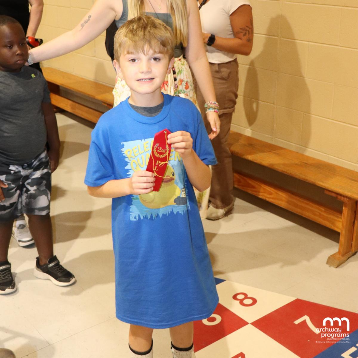 Before heading out for the remainder of their summer break, Upper School staff took time out to honor students for their excellent behavior during their ESY 2025 Summer Award Ceremony. Staff recognized students by presenting them with ribbons, trophies, and gift cards. Coach Brogan presented ribbons and trophies to the winning students for Swim Meet, Kickball, and Hockey; Ms. Jen presented the Perfect Attendance Award; Ms. Leshonda presented the awards for Best Career Students; Mr. Dustin presented Gift Cards to the Spelling Bee winners; and Mr. Mark, Upper School Principal, presented gift cards to the Student of the Summer honoring one student from each age group.