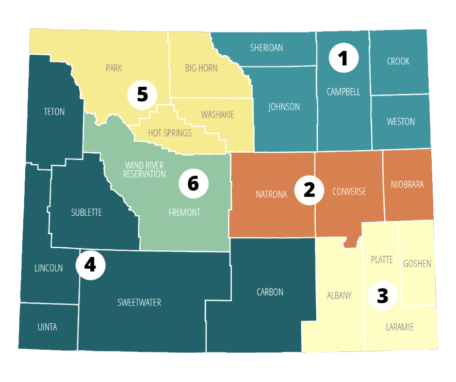 Carbon, Lincoln, Sublette, Sweetwater, Teton, and Uinta
