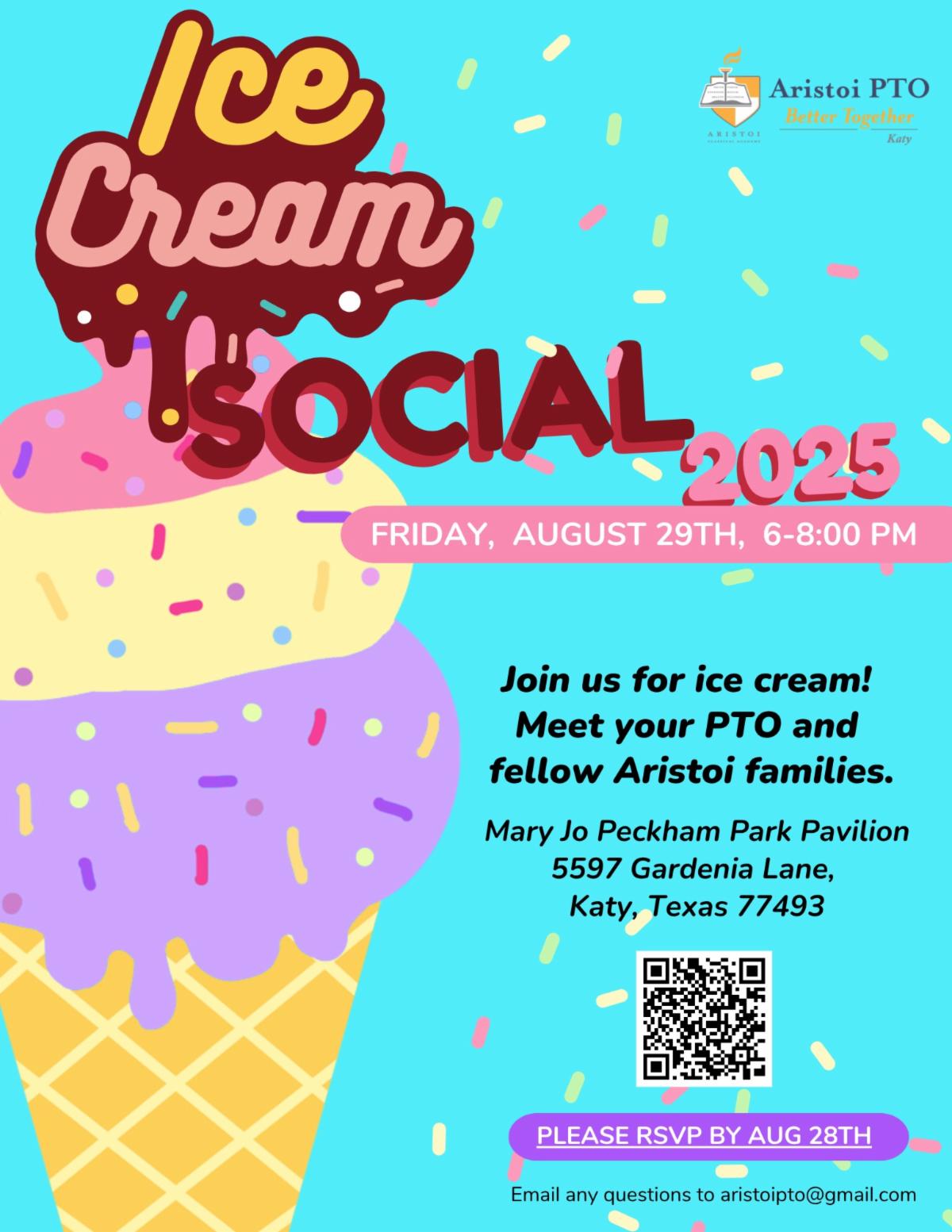 Come join PTO at Mary Jo Peckham Park on August 29th for their annual Ice Cream Social & Community Event to kick-off the new school year!