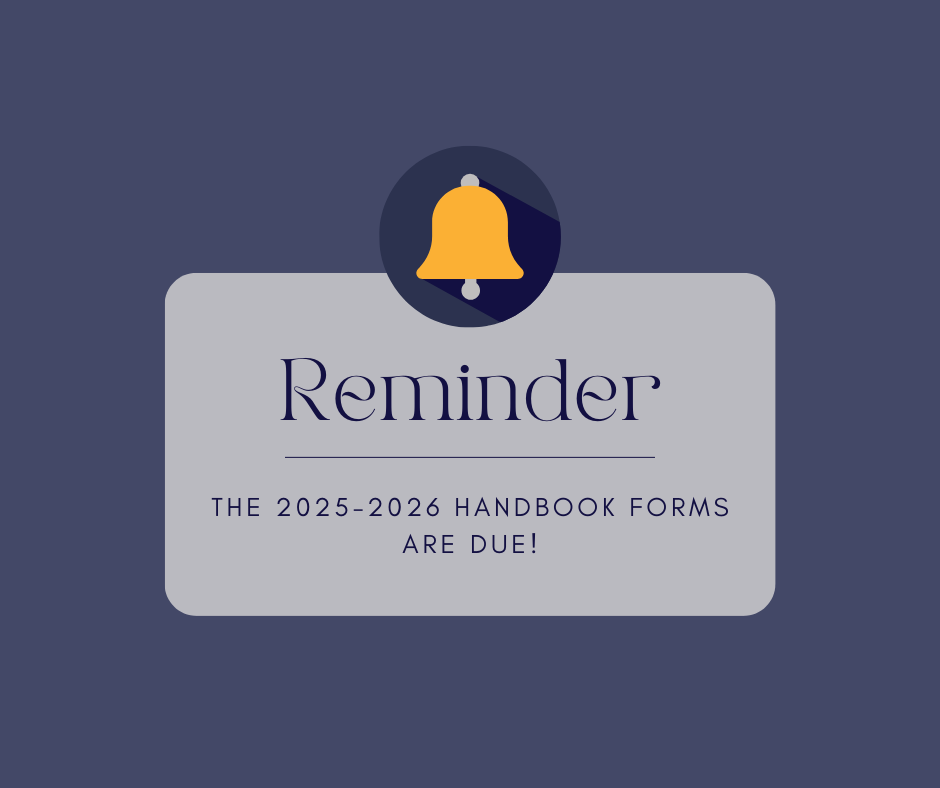 Even though we are already halfway through the school year, it is still important that all Yearly Form Packets are completed. If you have not yet submitted the required handbook forms, please do so as soon as possible.