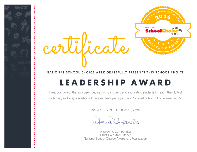 Aristoi Honored With Leadership Certificate for National School Choice Week