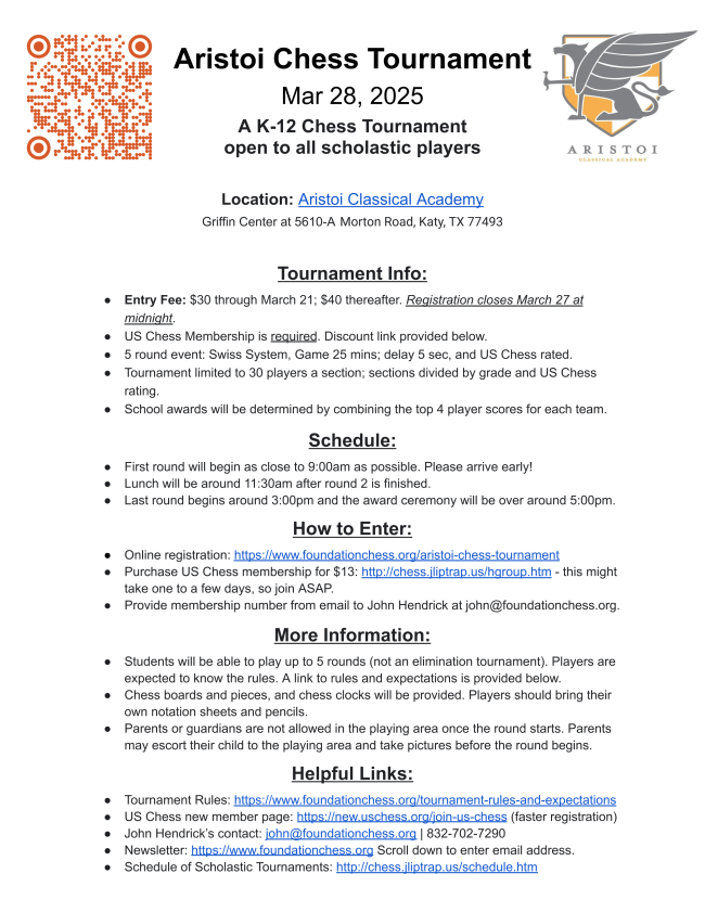 Please be aware of Aristoi's athletic policy. Please read the entire policy outlined here.