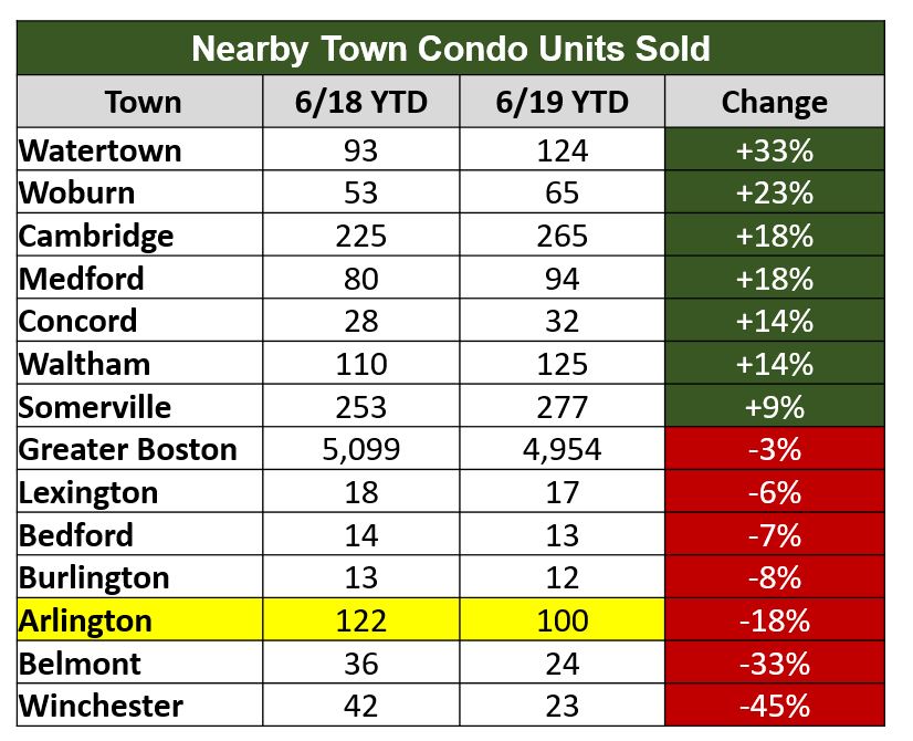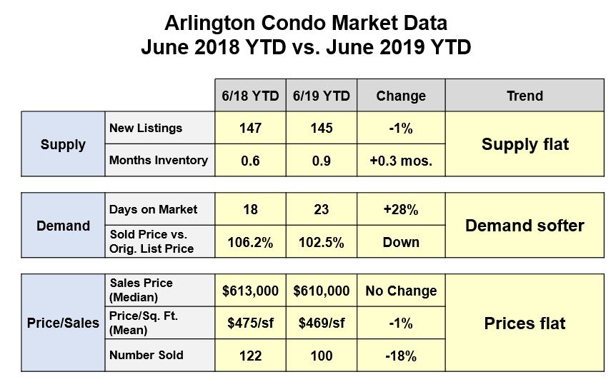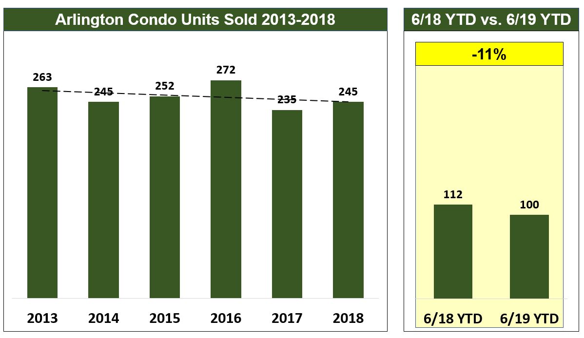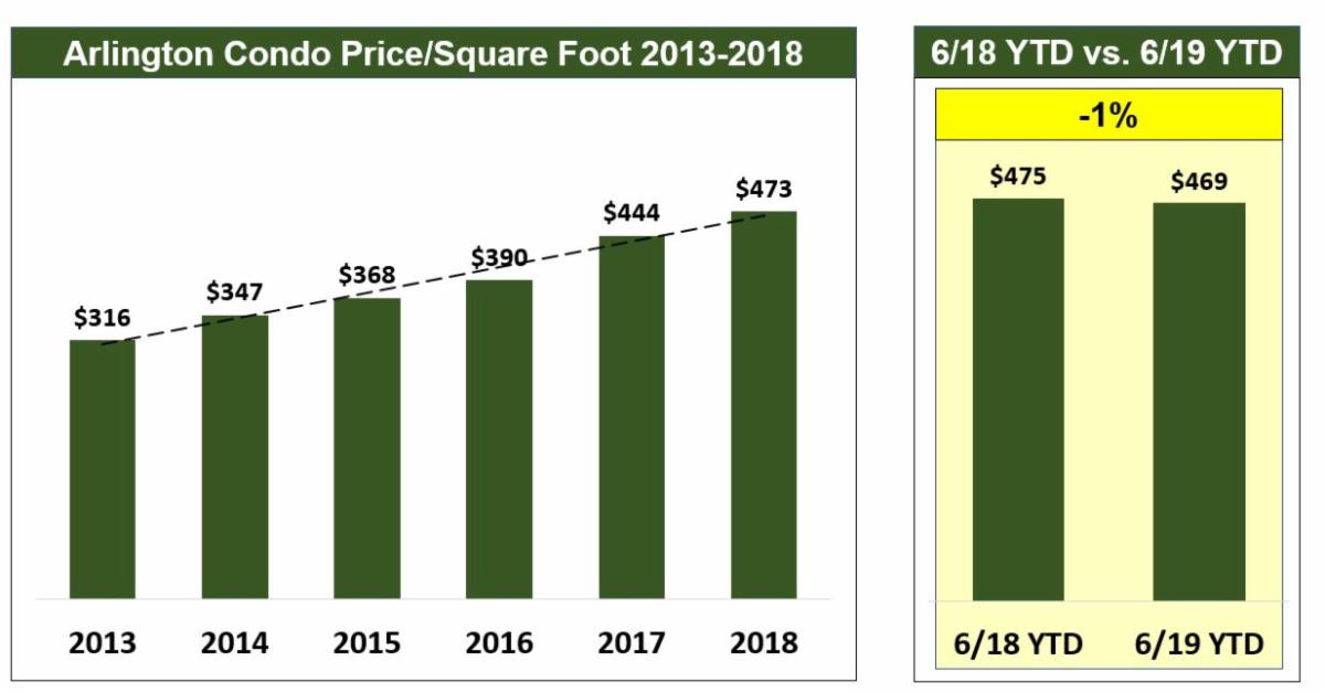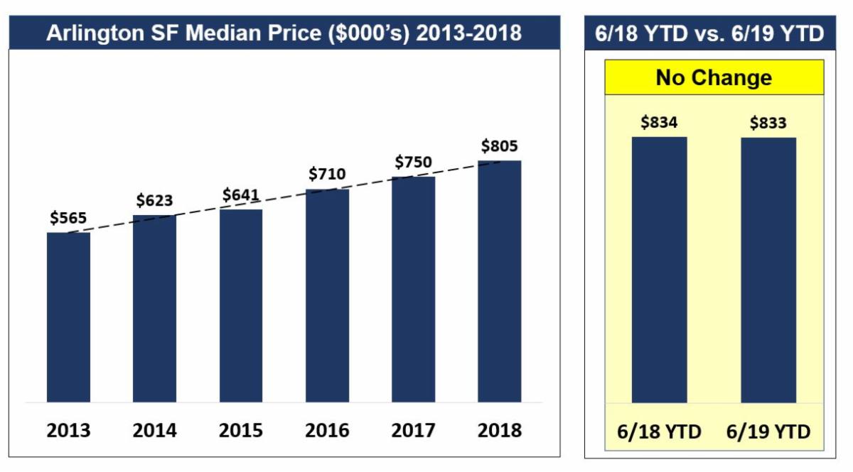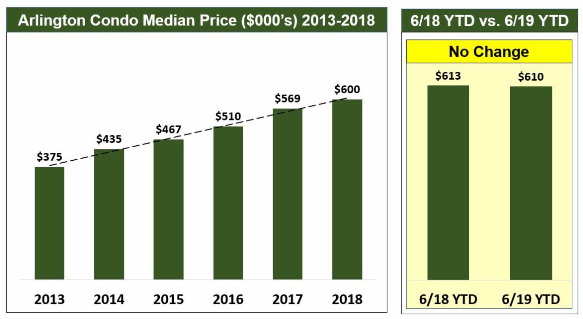 And there was a similar situation in the Arlington condo market. The median price for the first half of 2019 was just about the same as the median price over the same period in 2018.