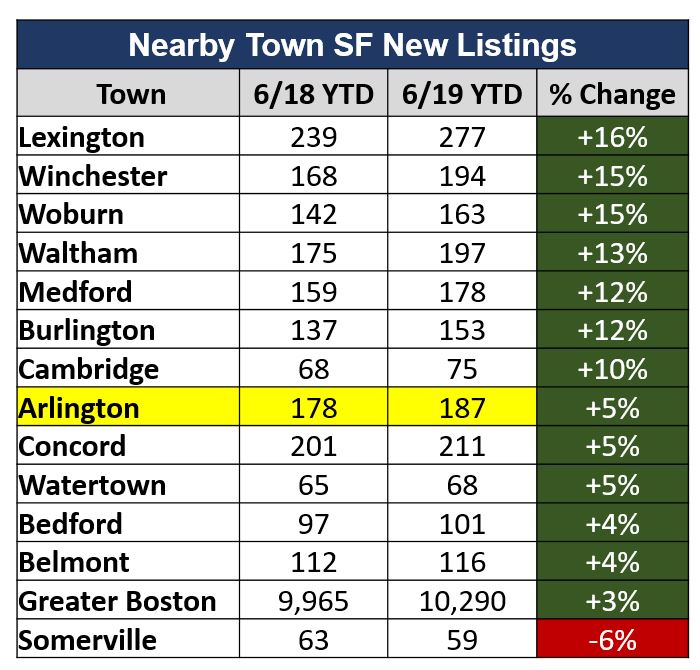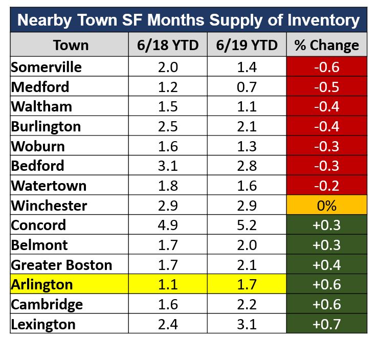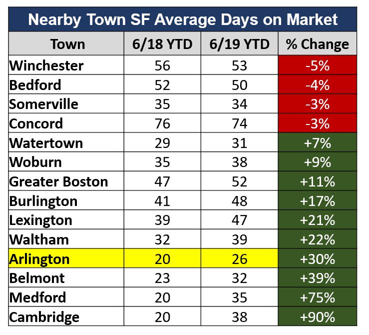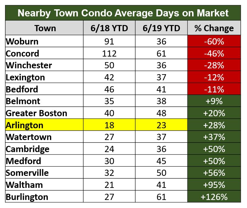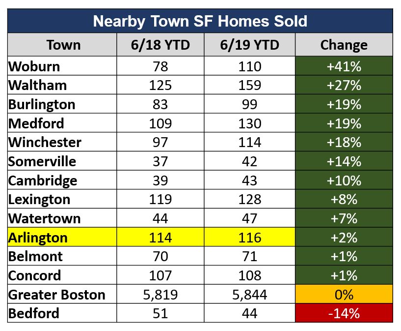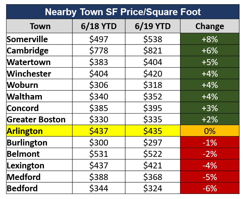 And when we look at the situation in nearby towns, we see that there were healthy rises in prices per square foot in some of these towns, indicating that the market in those towns could be strengthening versus Arlington's.