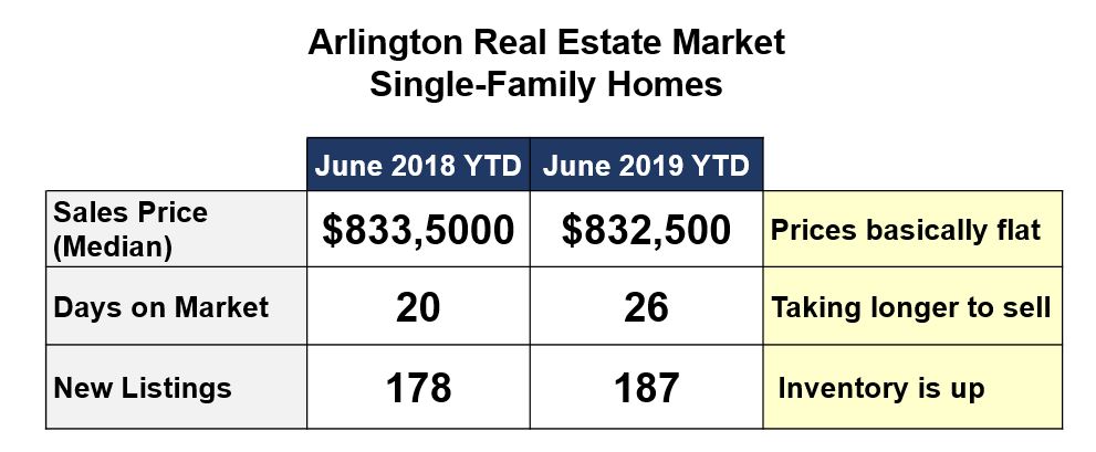 Here's my newsletter recapping the Arlington residential real estate market for single-family homes and condos, year to date (through June 2019).