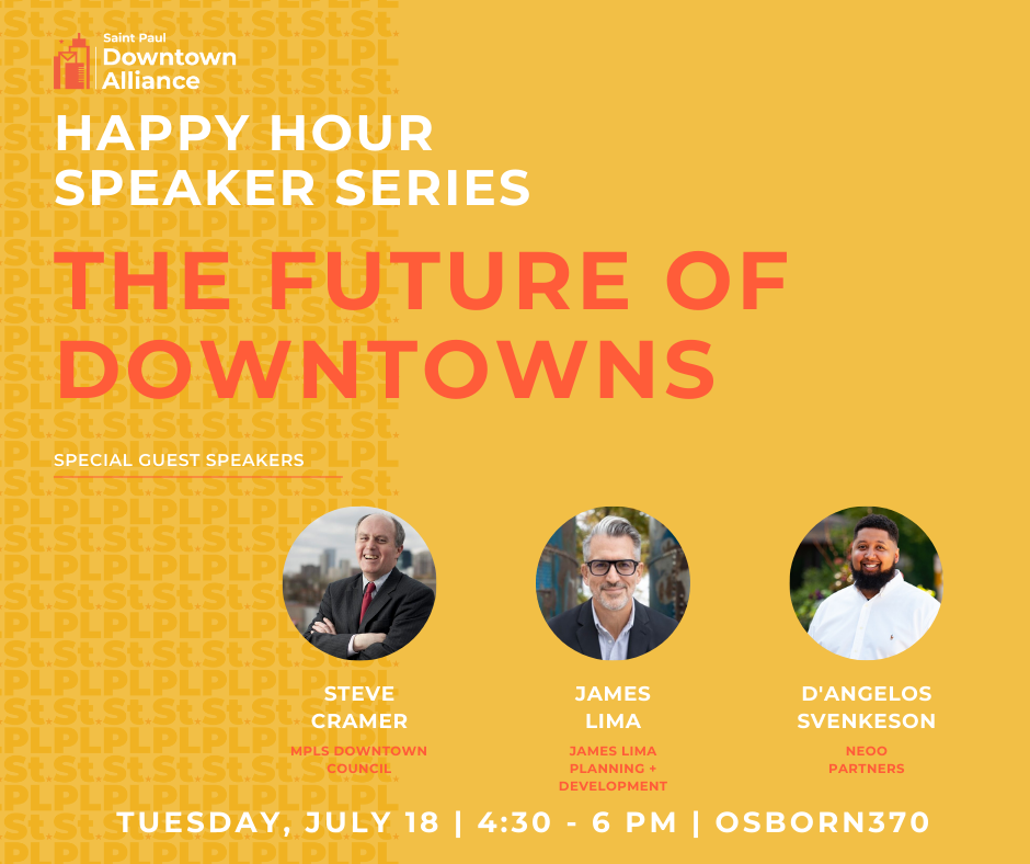 Earlier this week we made the exciting announcement that the Downtown Alliance is leading an effort in partnership with public and private stakeholders to create a development strategy that furthers density, vitality, and desirability in downtown Saint Paul. The Downtown Investment Strategy will identify three to five priority development opportunities and/or initiatives based on stakeholder input, community engagement, market analysis, and an economic impact assessment. This new, innovative undertaking pulls together property owners, government entities, nonprofits, and business organizations to all move in the same direction to accomplish economic development goals for downtown Saint Paul.