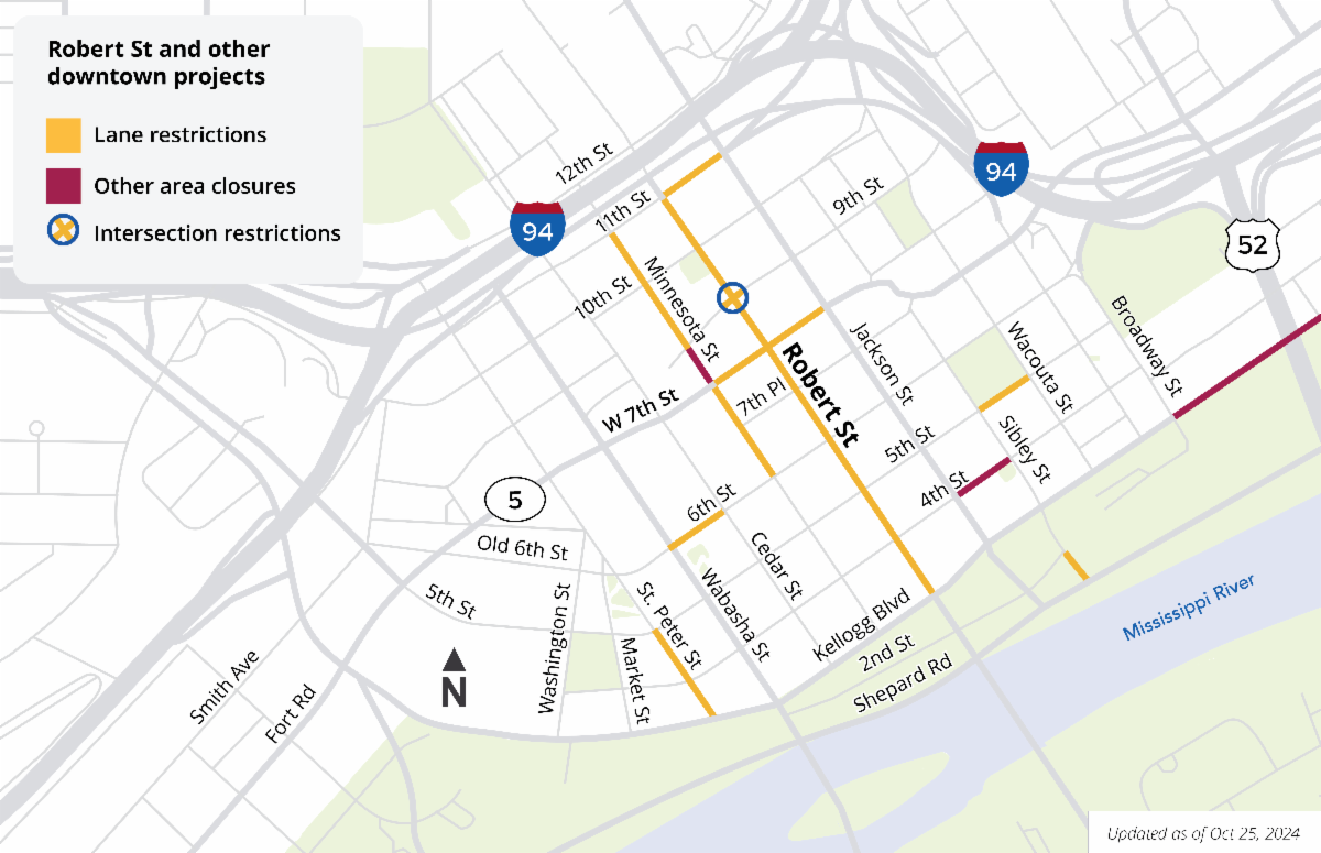 - Traffic restrictions expected near the Robert Street intersection through early November.