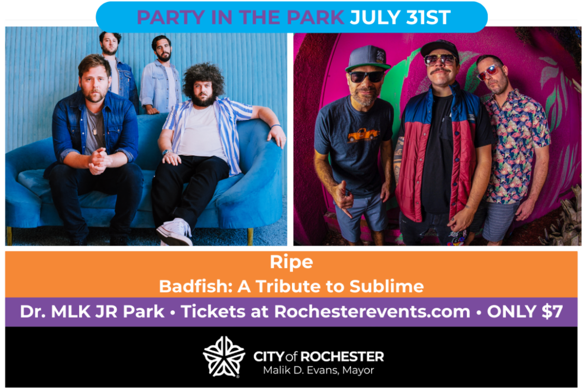Don’t miss Ripe’s high-energy mix of alt-pop, funk, and soul, plus Badfish’s feel-good tribute to Sublime—live at MLK Jr. Park as part of Party in the Park!
