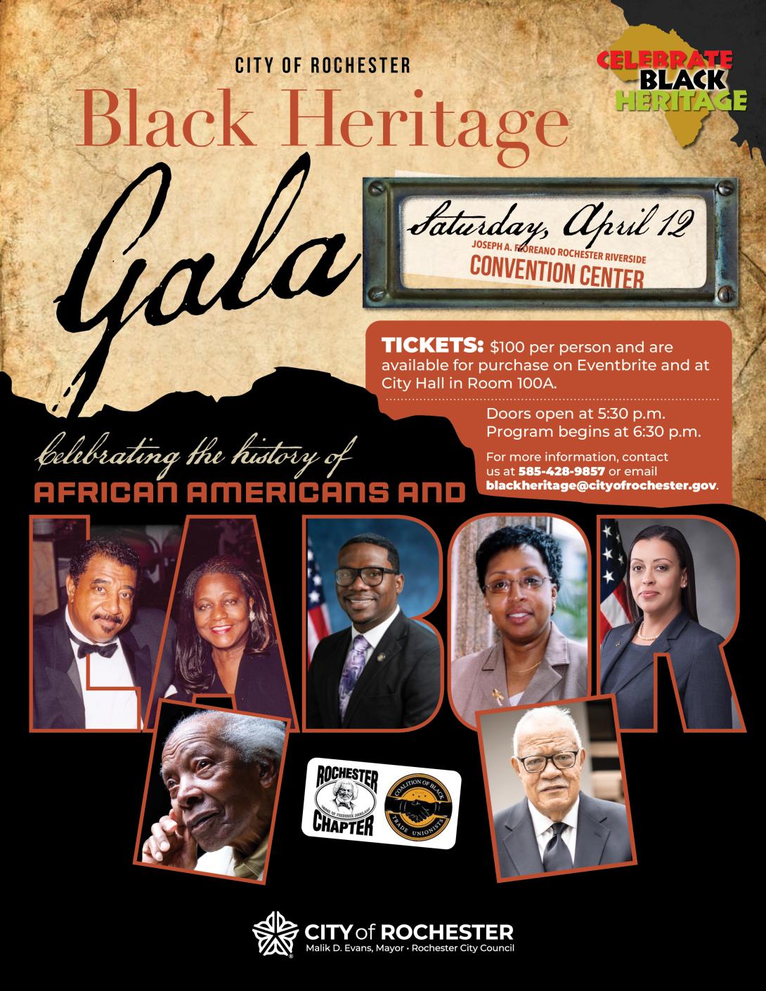 The City of Rochester welcomes the community to the Black Heritage Gala—an evening dedicated to honoring the contributions of African Americans. This year’s theme, "African Americans and Labor," highlights the vital role African Americans have played in shaping the workforce, championing labor rights, and advancing economic progress. The gala will celebrate the rich history, achievements, and ongoing impact of African American individuals in Rochester and beyond.
