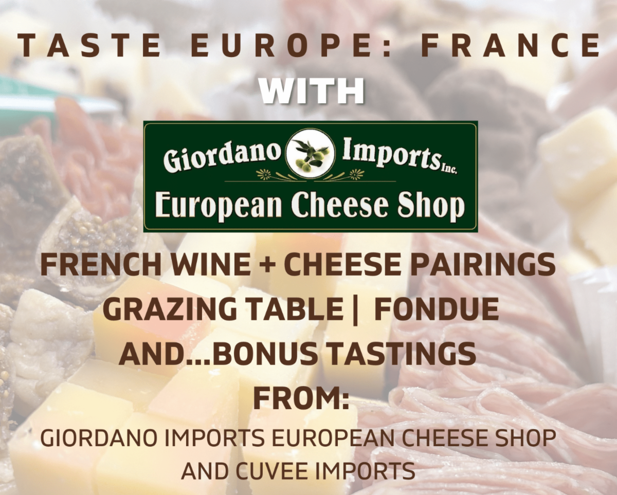 Experience the culinary traditions of France at this edition of Taste Europe, featuring Giordano Imports and Cuvee Imports at Unwine'd. Guests will enjoy a four-course wine and cheese pairing, a decadent alpine fondue with gourmet toppings, and an abundant grazing table overflowing with French-inspired delights. With expert guidance from Vince and Eric and a surprise bonus tasting, this night is perfect for food and wine lovers alike.