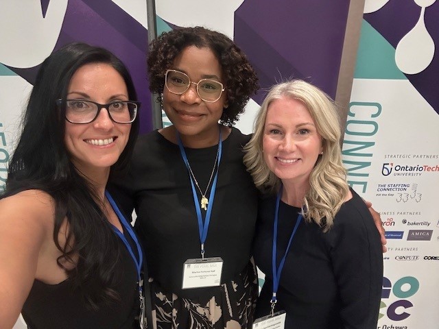 | | The Pearl Gala - 30th Annual Greater Oshawa Chamber of Commerce Business Excellence Awards | | On October 1st, CLOC's Board Chair, Dr. Julia Fineczko (left) and Director of Engagement, Marisa Fortune Hall (centre) attended the 30th Annual Greater Oshawa Chamber of Commerce Business Excellence Awards, The Pearl Gala. They ran into a familiar face, CLOC's former Manager of Resource Development & Public Relations, Julie VanHartingsveldt (Neely). | | | | |