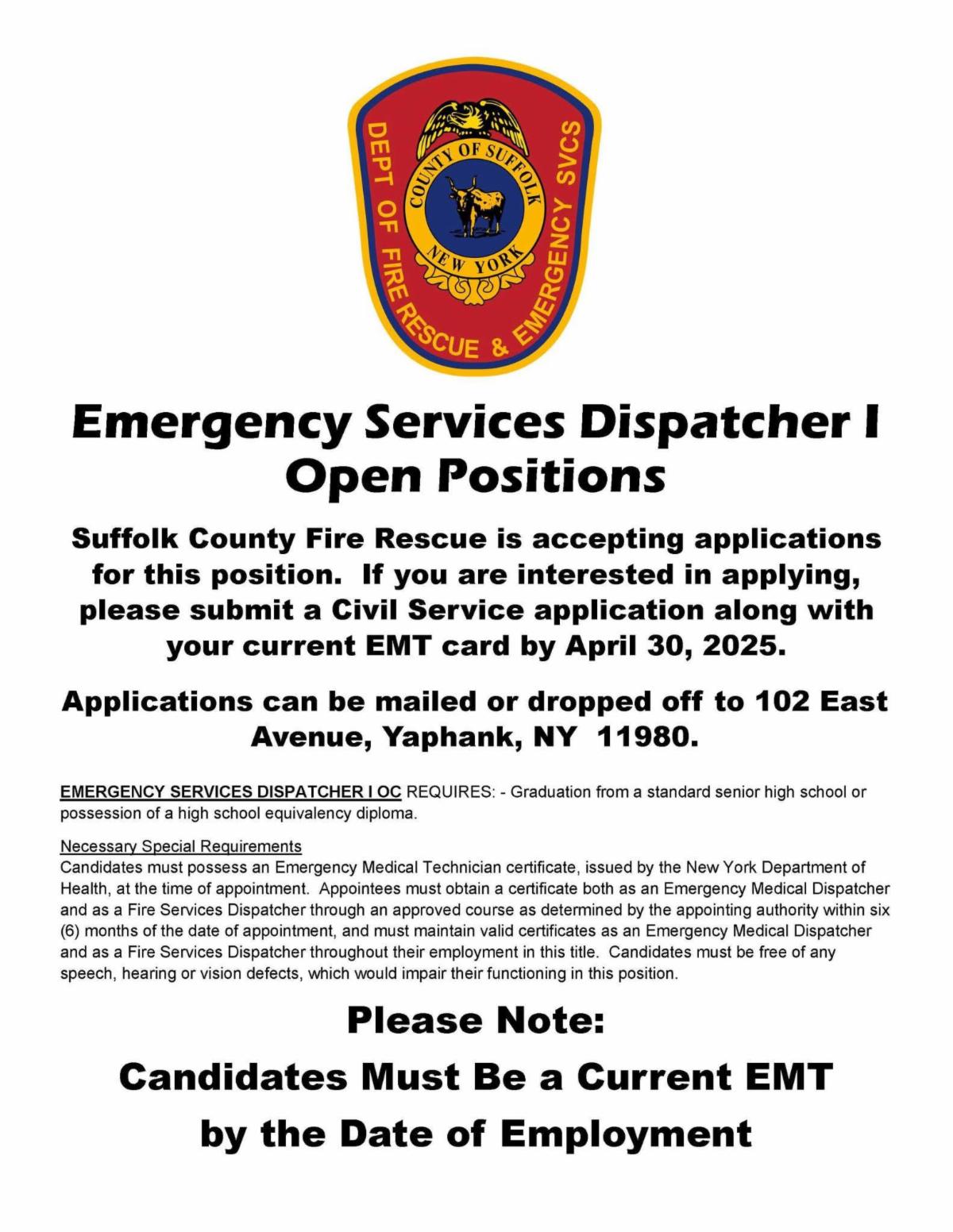 | | Suffolk County Fire Rescue | | Suffolk County Sheriff's Office | | City of Poughkeepsie Police Department | |