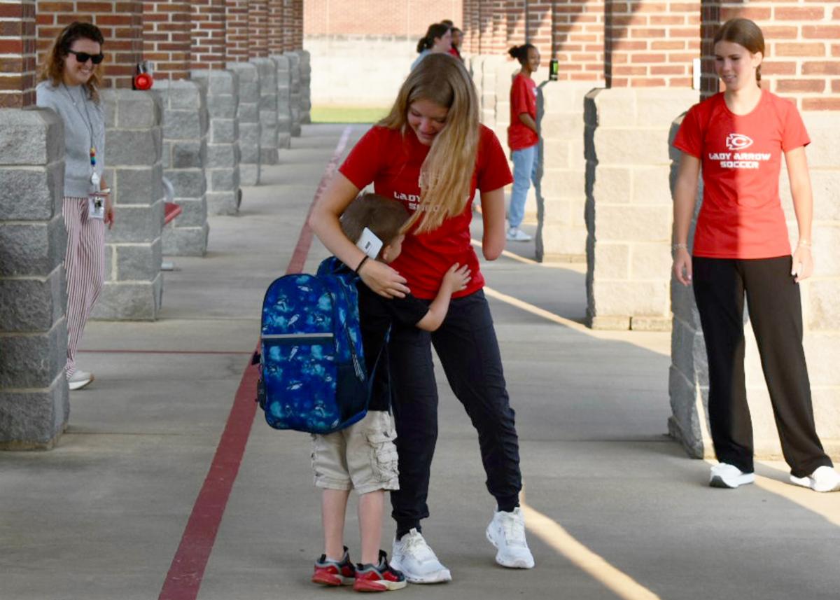 Players and coaches with the Lady Arrows Soccer team welcomed students in the Clinton Park car rider line to school on Wednesday morning.