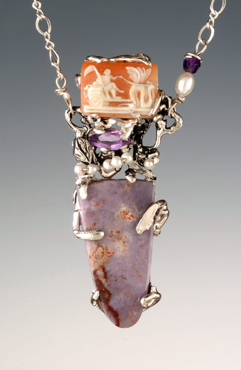 The “joie de vivre” running through Barrett’s work was highlighted in a 2012 Art Times profile by critic Raymond Steiner, who noted that her jewelry carries meaning far beyond ornamentation. Steiner wrote: “seeing her work of art in the hands of another who senses its divine origins is not simply a “sale” – it is a profound sharing of self with other self, of sharing in the oneness that connects us all.” That spirit remains today. A few minutes at Barrett’s booth (Tent B, space 33) makes it clear that her exchanges with customers are not mere transactions. “Those who feel my work,” says Barrett, “they feel it. And the ones who do, feel deeply. It’s about empowerment. About spirit.”