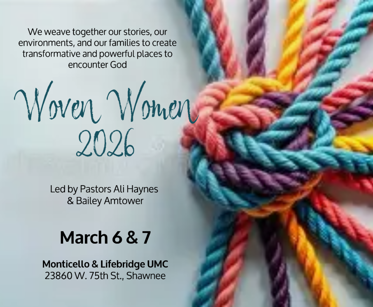 Asbury ladies, you are invited to the 5th Annual Woven Women retreat, hosted by Pastors Ali Haynes and Bailey Amtower of Monticello UMC & Lifebridge UMC.
