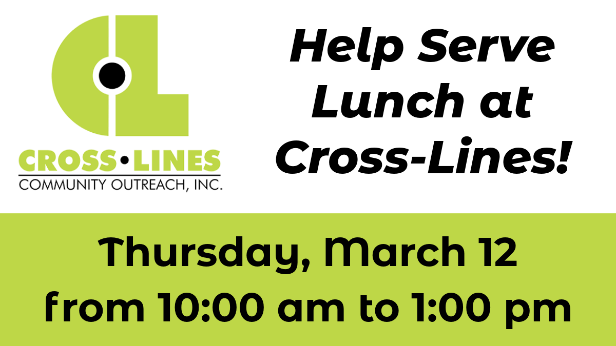 | | Help Serve Lunch at Cross-Lines on Thursday, March 12 | |