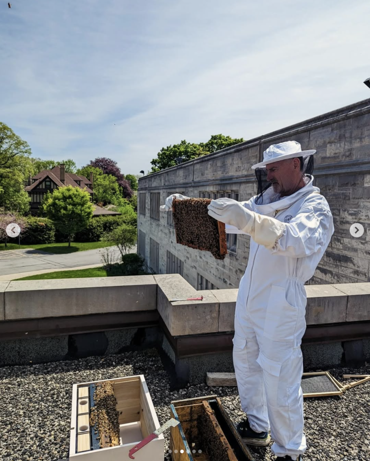 When I got into beekeeping I had to choose between keeping bees way out on a farm that was a decent drive away, or finding a way to make it work here in downtown Rochester. I researched urban beekeeping and decided I wanted to fully commit because of all the benefits to the bees and all of the awareness they bring to urban pollinators, and not to mention hyper-local products. To further this goal, I set out to partner with businesses and organizations to make the project very collaborative, to get the bees not only here, but involved in collaborations and community projects to further their involvement and awareness. My first two locations were churches, which felt like a good fit because both locations had a great commitment to sustainability that was furthered by adding honeybees on site. Also, the opportunity for community projects with the bees has been constantly growing - from the pollination of produce, and honey, for food pantries, to educational opportunities for all ages.