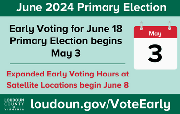Loudoun County election officials remind voters that early voting for the June 18, 2024, primary election begins May 3, 2024.