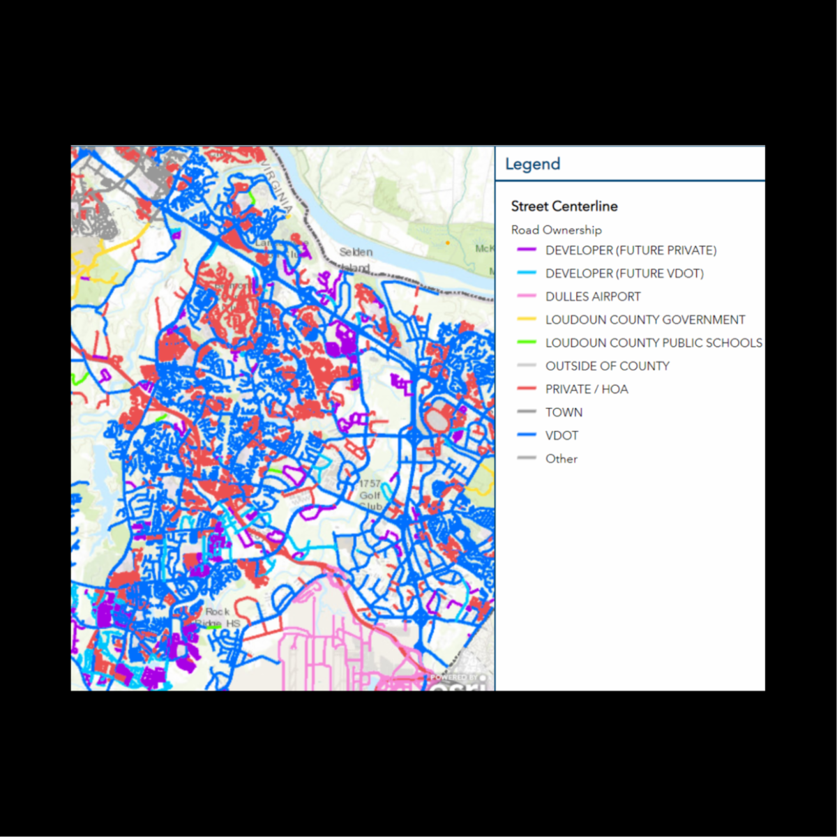 To identify which entity responsible for maintaining your road/street, Loudoun County made an online color coded mapping system which helps residents determine who to contact when work needs to be done.