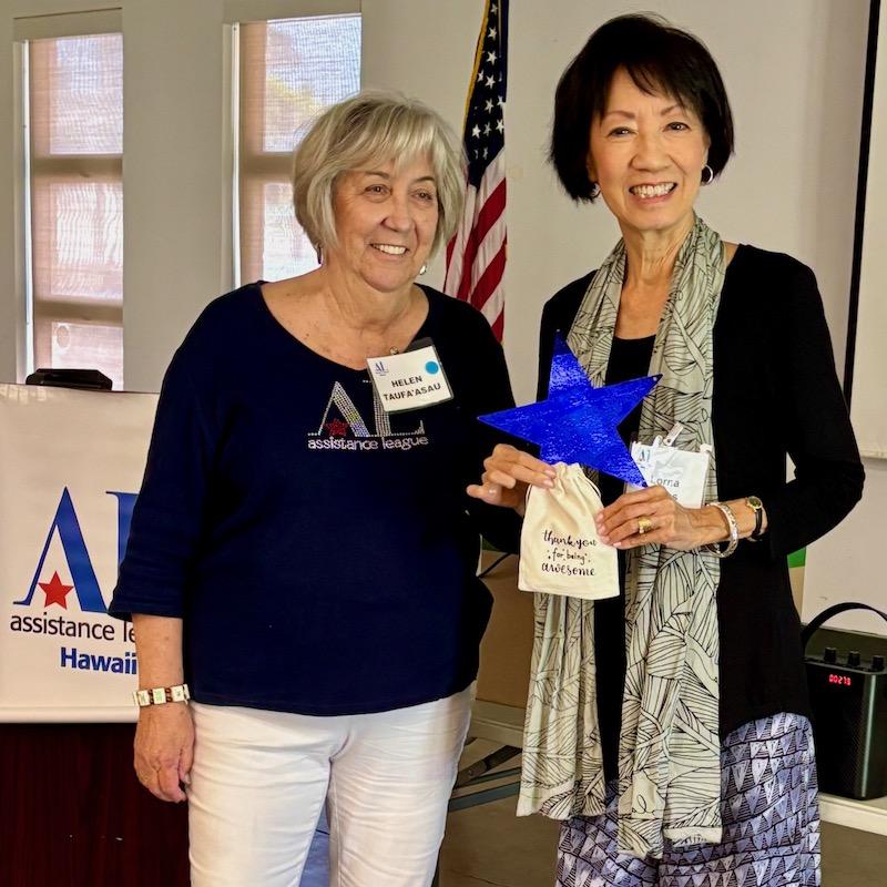 We have many wonderful volunteers who are doing so much to help Assistance League Hawaii achieve its goal to help Hawaii's keiki and families. It is a big task to recognize only one person as a Star each month, but Lorna Motas stands out because she has only been a member since July 2024, and since then, she has really stepped up and stands out for her contributions to many of our programs.