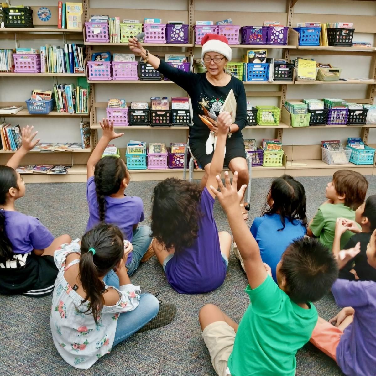Operation School Bell Literacy program volunteer Maureen Izon gets school age children immersed in the wonder of learning through the program's oral reading sessions. Youngsters readily soak up new ideas and stories. | |