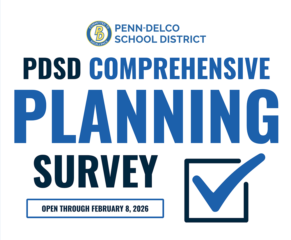 We Want to Hear From You! As part of the district's Future Ready Comprehensive Planning process, Penn-Delco is seeking feedback from parents/guardians, staff, students, and community members. Your input helps guide district priorities and future decisions. The survey is short, anonymous, and open through February 8, 2026. Survey link: https://forms.gle/6xniN8aeJBnnUL2X6.