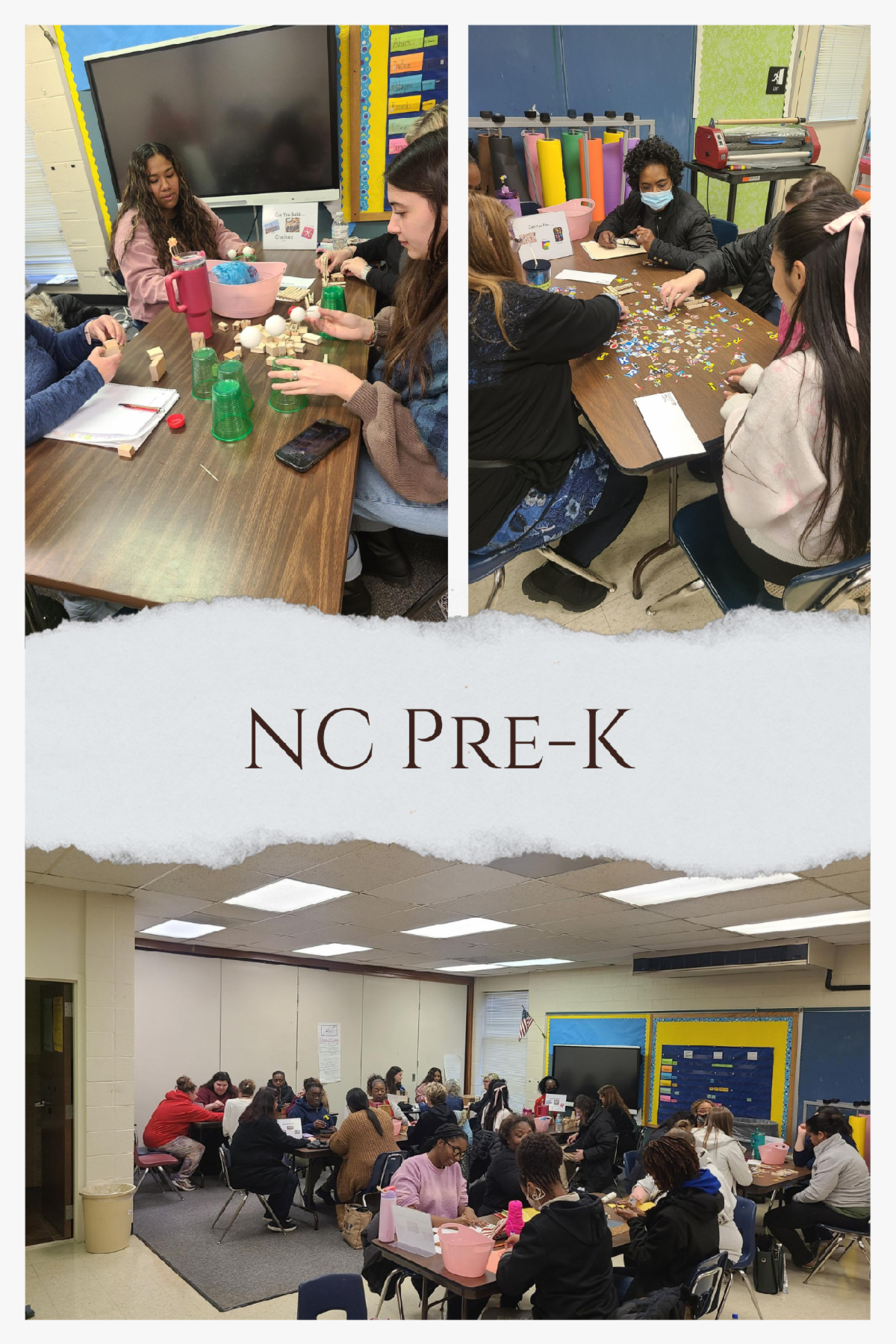 This month the NC Pre-K teachers had an exciting professional development opportunity to explore hands on materials with Chelsea Belyea the Program Quality Specialist for Pre-K MASTERS. This professional development allowed teachers to come up with activities that aligned with the North Carolina Foundations for Early Learning and Development.