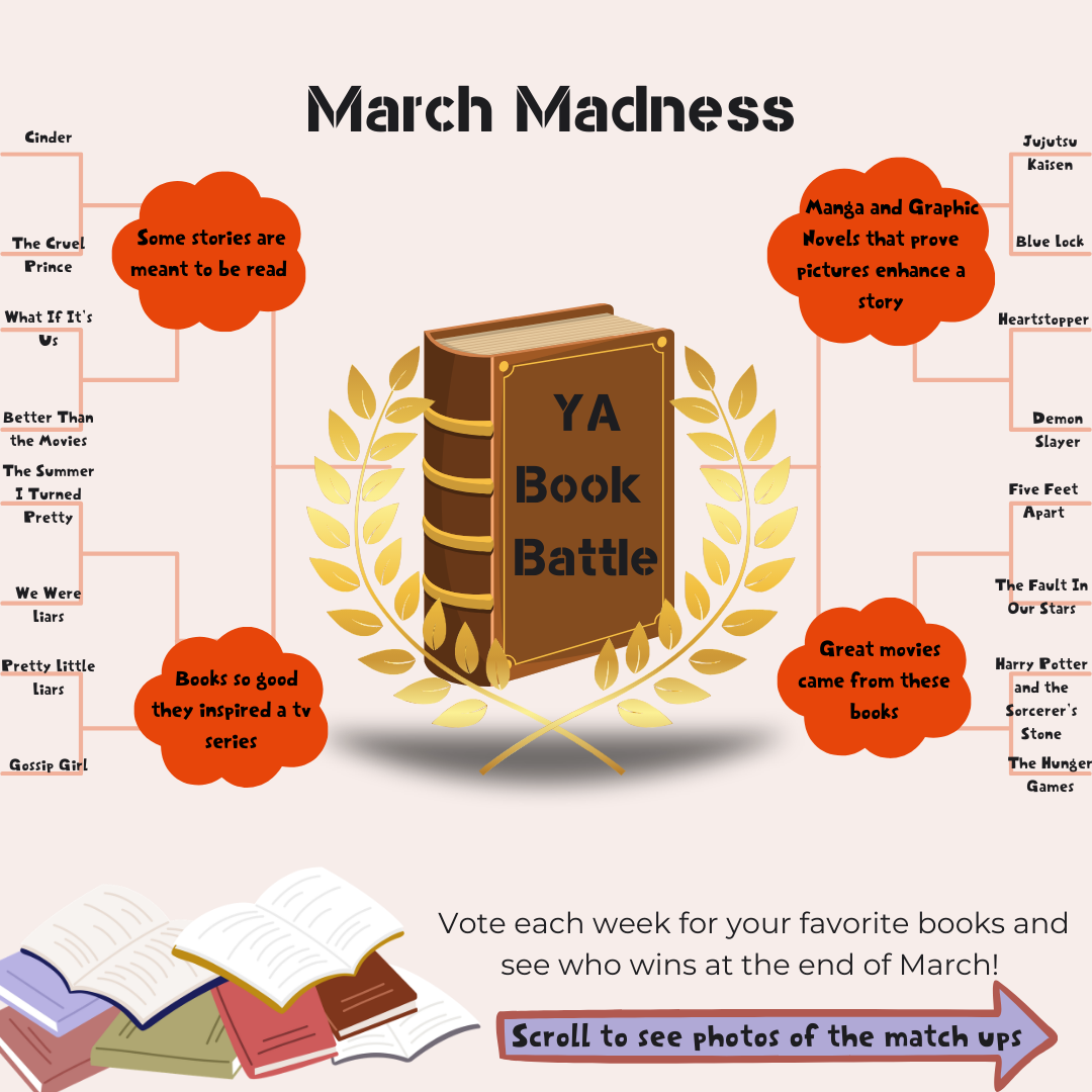 Which YA book will reign supreme? Vote every week between pairs of fantastic works to help determine the winner! Voting will open by Sunday at 10am and close on Saturday at 10pm.
