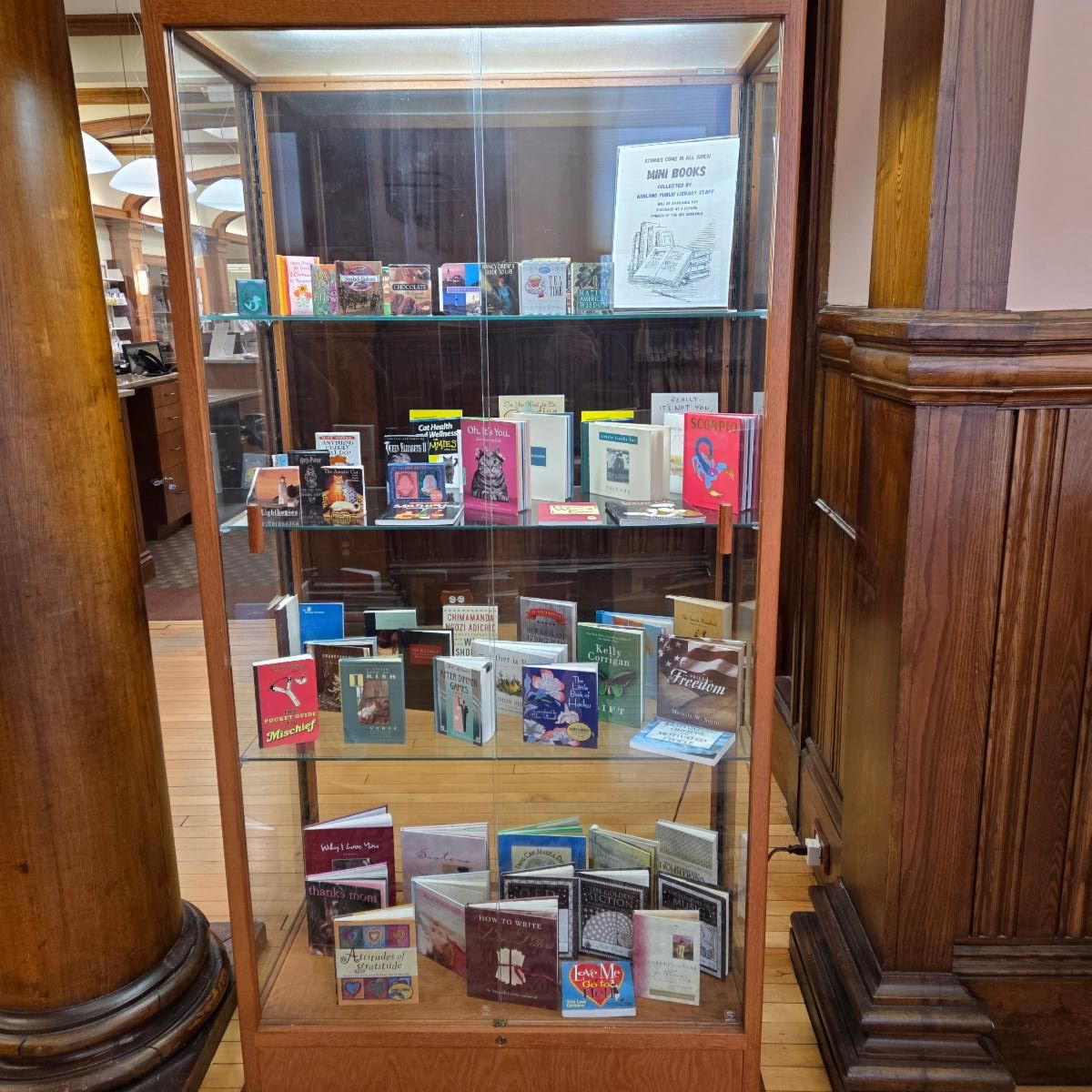 The Library staff know stories come in all shapes and sizes and are happy to share some of their tiniest books for this display!