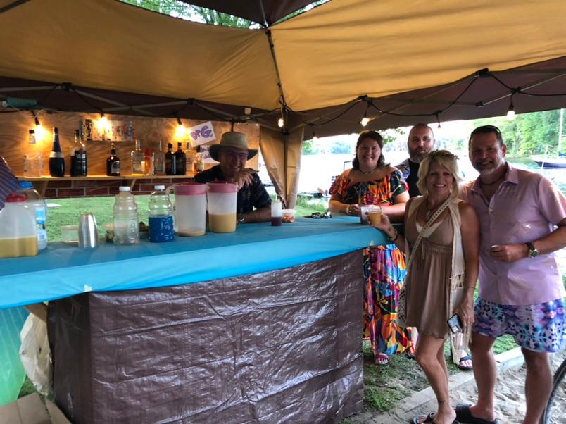Members turned out in force for PCC’s Summer Party on Saturday, July 30th! We planned for a laid-back Venice Beach California vibe and Ron Gallagher set the mood perfectly with his beach side bar and also turned our own little beach into a little SoCal heaven. Dr. G, as he was known, served up his exclusive esoteric substances, in this case perfectly legal Painkillers and Electric Blue Margaritas. The party then moved to the porch for some of the best street food L.A. has to offer. Dessert included a sweet tribute to Sue Porter, who just this week was released from that daily rat race we call work. Happy Retirement Sue!